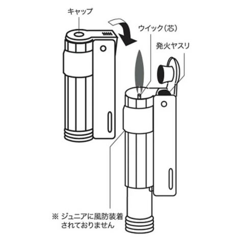 また、ライター本体と芯の入ったオイルタンクが完全に分離、平坦な場所で直立させることが可能で
