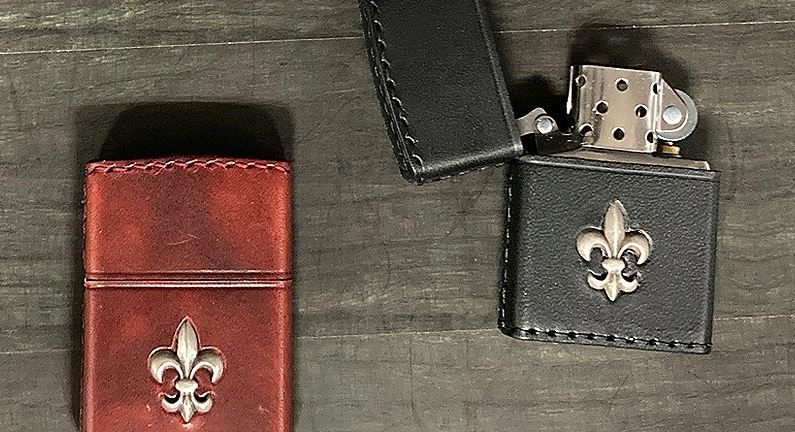職人の技術によって丁寧にまかれた牛革に人気のユリモチーフを施したジッポライター。