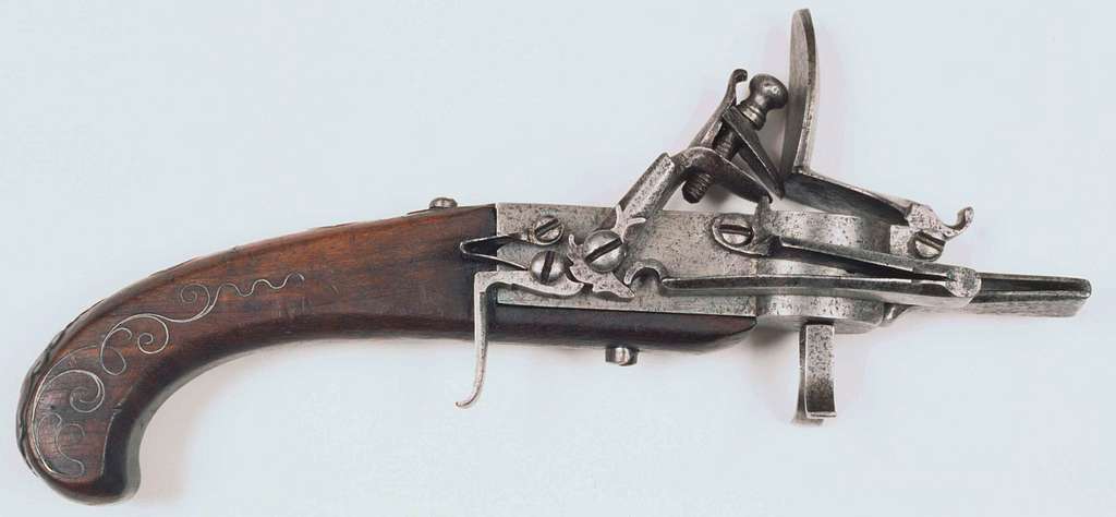 17世紀から18世紀にかけてフリントロック式という銃が使われていました。パイレーツオブカリビアンでジャック・スパロウが使っていたアレです。