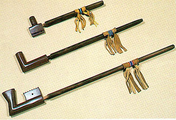 パイプは単なる喫煙具というだけでなく、インディアンたちの間で儀式道具として大変重要な意味合いがありました。あらゆる儀式で必ずパイプの回し飲みが行われたり、パイプと煙を使って精霊と交信したりなど、パイプにはインディアンの文化と密接な関係にあります。