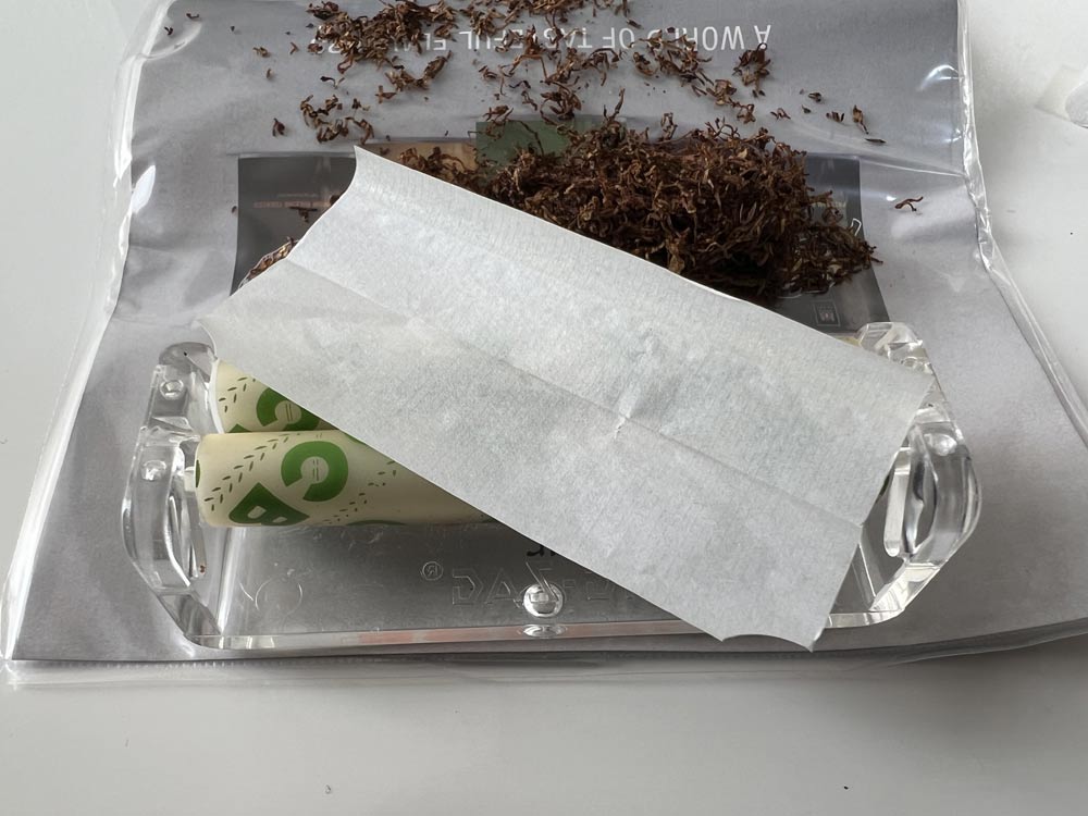 シャグの湿度は十分、ちょっと固めに圧縮されているのでよくほぐしてから巻いていきます。しかし美味しそうな香りだなぁ。
