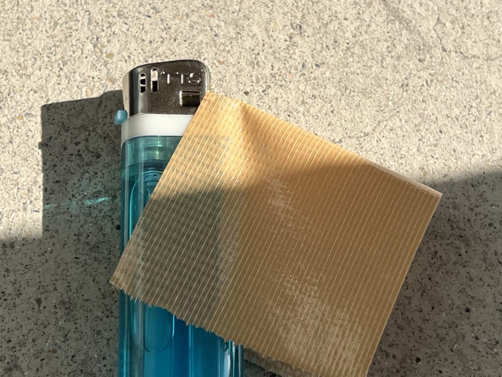 画像はフリント式の場合です、着火レバーを押し下げた状態にしてガムテープで止めるだけ。