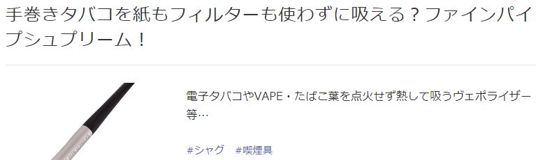 夏場の暑いときには単体で巻いて吸うかファインパイプなどで吸ったりしますけども。あ、ファインパイプというのはシャグをペーパーやフィルター無しで吸う