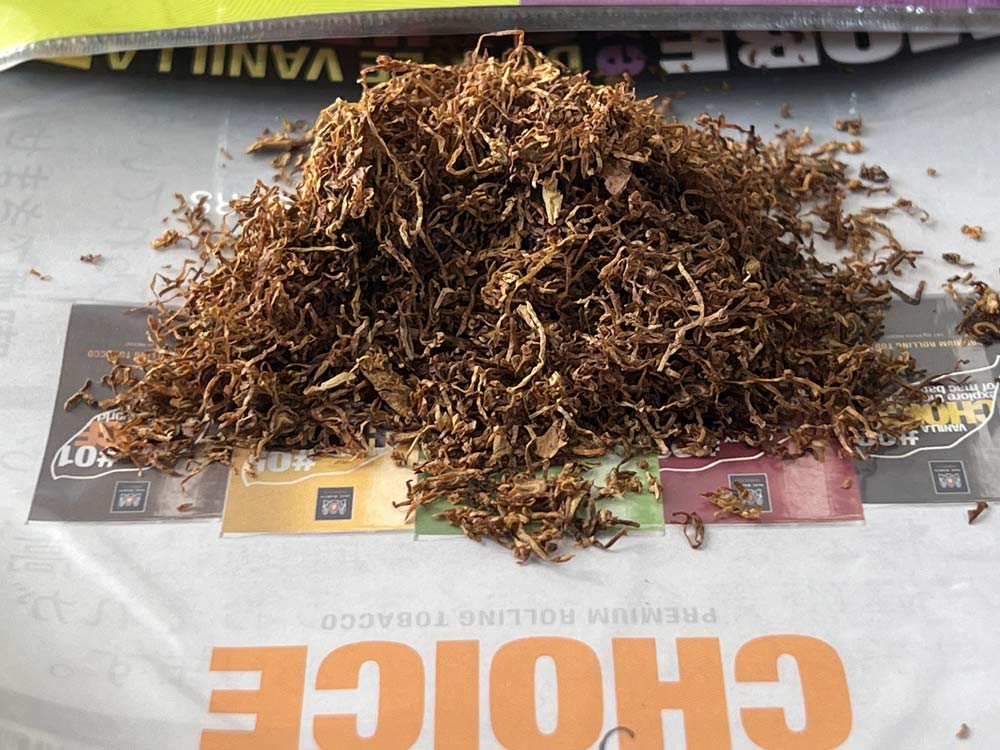 葉脈がちょっと混ざっていますが、大きな茎などはありませんでした。ほぐしていると葡萄とワインの香り、葉組はバージニア、バーレー、オリエントの模様。ワインは苦手でも美味しそうな香りがします、ガムのようなお菓子の香りっぽくなくほんとにフルーツとワインの混ざったような香り、これは味に期待が持てる。
