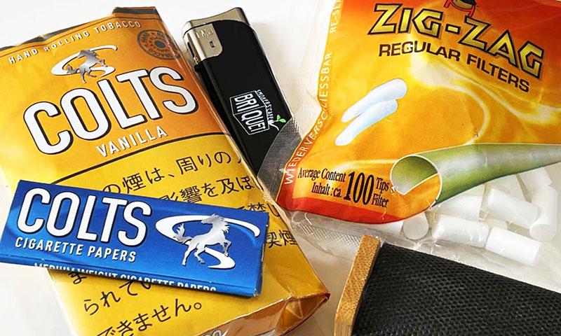 レギュラーサイズ、フィルターありとなしで各二本づつ巻いて準備完了。指から甘い匂いがしますがフレーバーシャグはどれもこんなものでしょう。