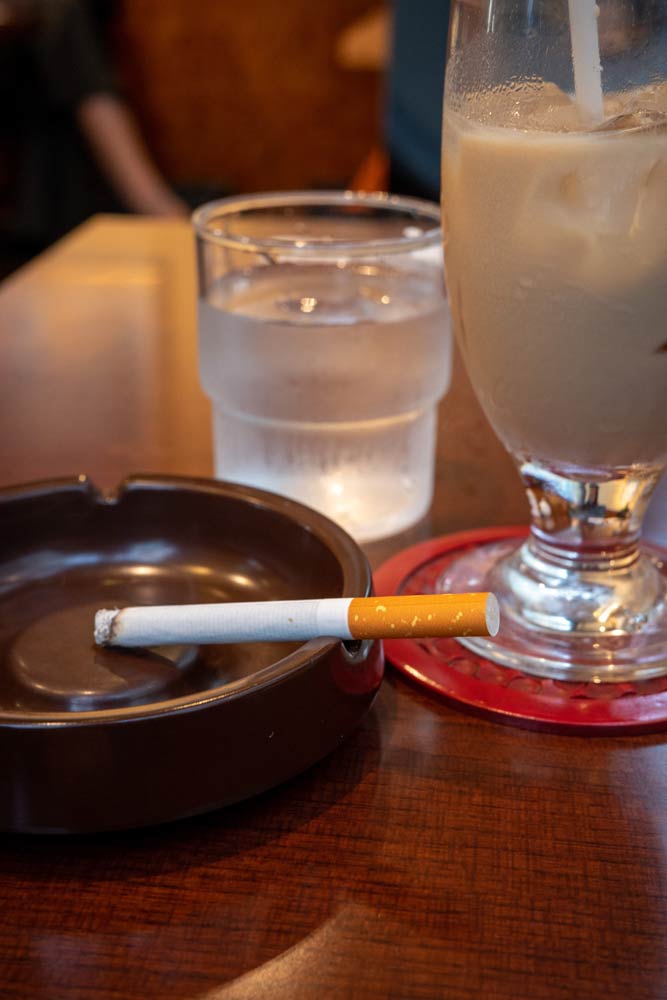 話は逸れますが、昔はこの喫茶店の横が喫煙所のようになっていました。細い路地なのでみんな隠れるように喫煙していた場所なんです。今は喫煙禁止の看板や、地面にプリントまでされてあるのに