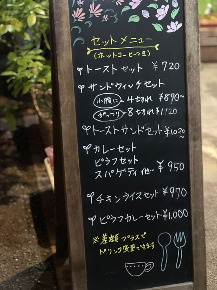 メニューも定番のケーキセットやサンドイッチなどの軽食。ピラフやチキンライスなどもあるのでお昼で込み合う前に行くのもいいかもしれません。ピラフカレーが人気だそうですがまだ食べたことないんですよね、そのうち食べてみたい。