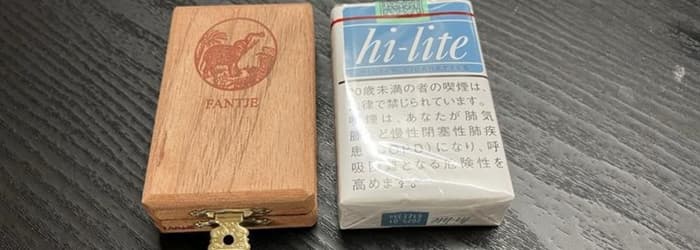 一般的なシガレットと比べてみたらだいたい同じ、キングサイズ(85mm)の箱くらい、厚みもそんなに変わらないので携帯性は問題なさそうですね。