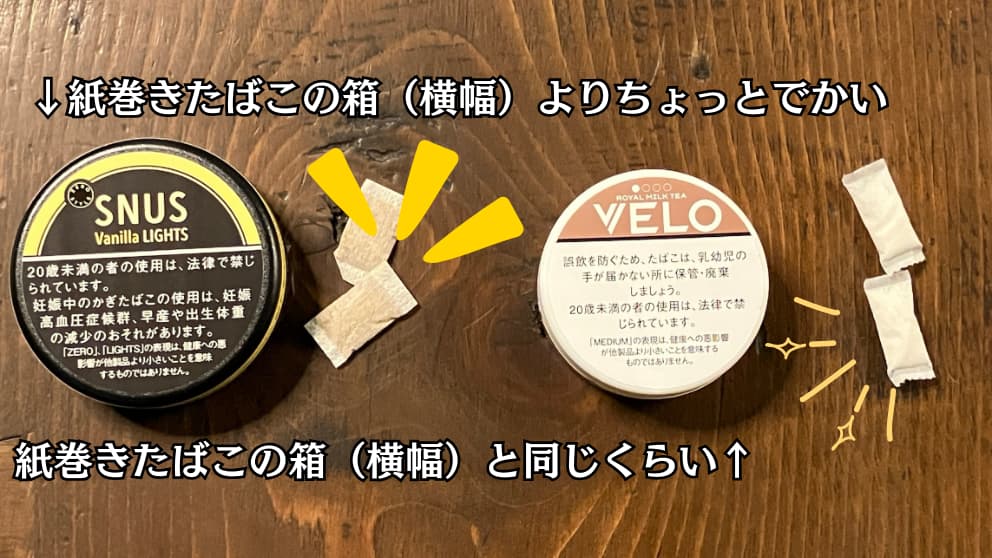 あとは15分から30分ほどで味が薄くなったら紙などにくるんで捨てるだけとなっております。SNUSは日本たばこ産業が販売、VELOはブリティッシュアメリカンタバコジャパンが販売しています。