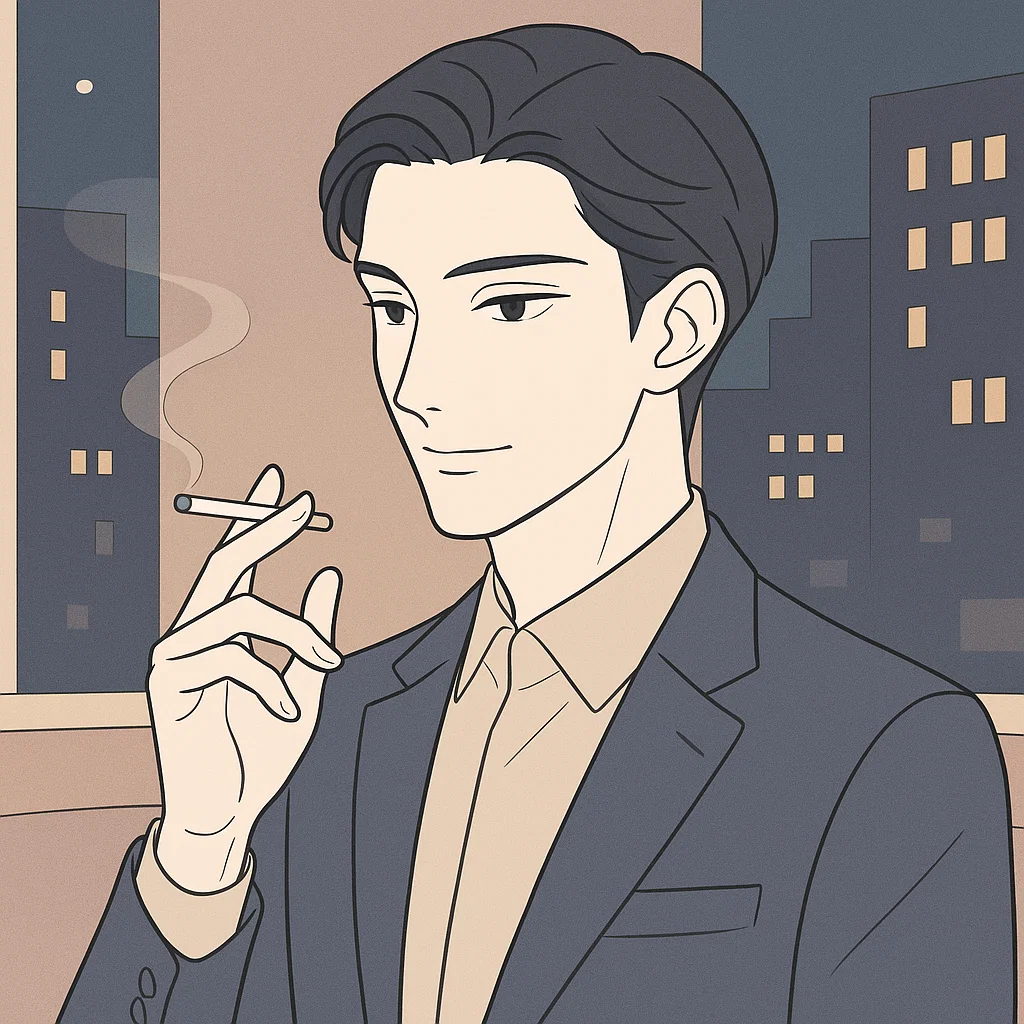 火をつける仕草もどこかエレガントで、何気ない動作に余裕がにじみ出る。